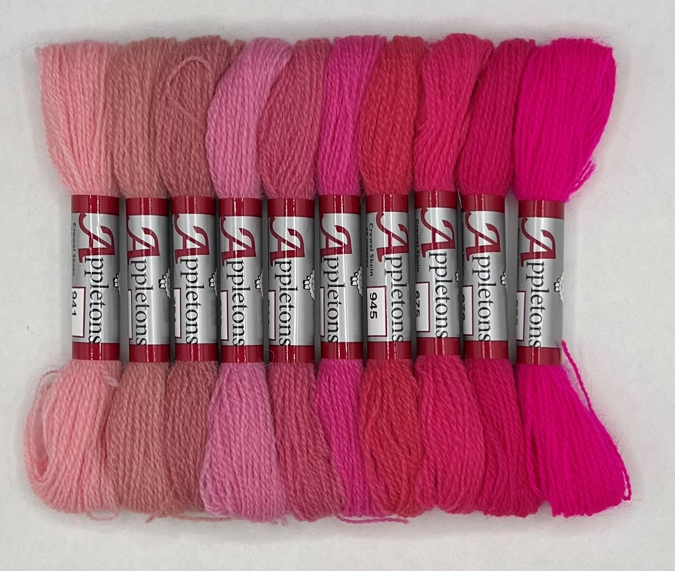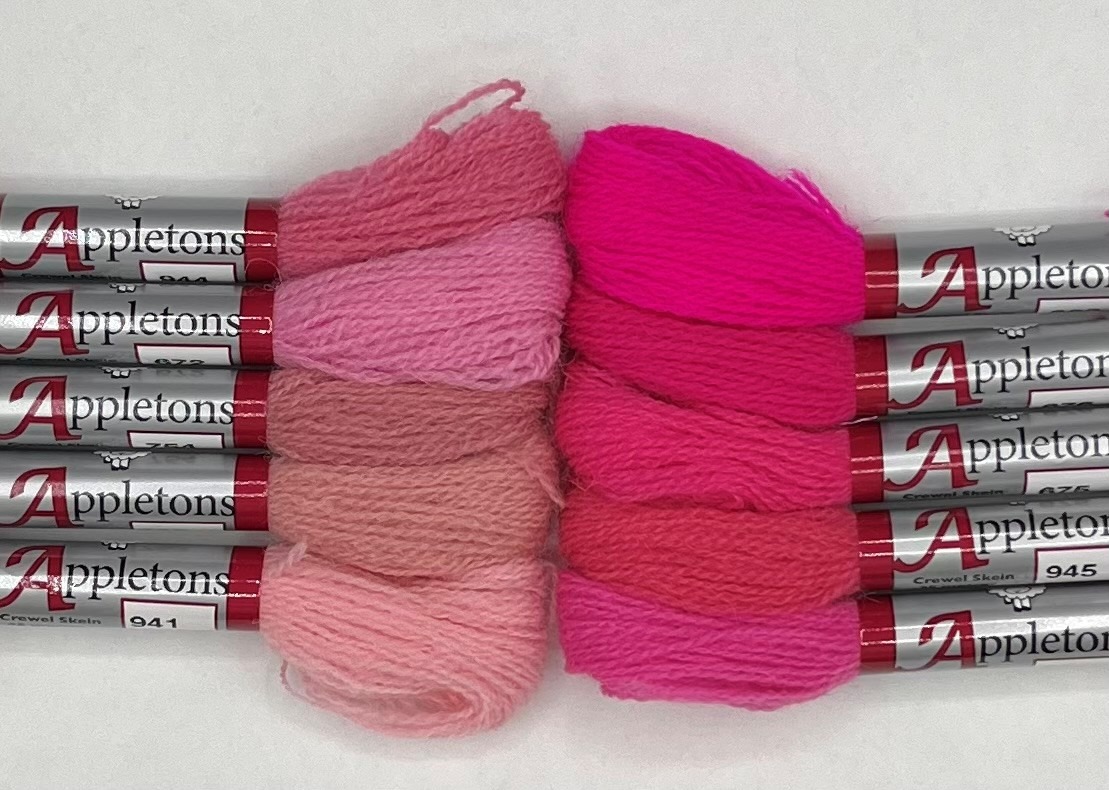 A preselected range of 10 crewel skeins (each 25m in length) to help explore the colour palette. Pinks contains the following shades: