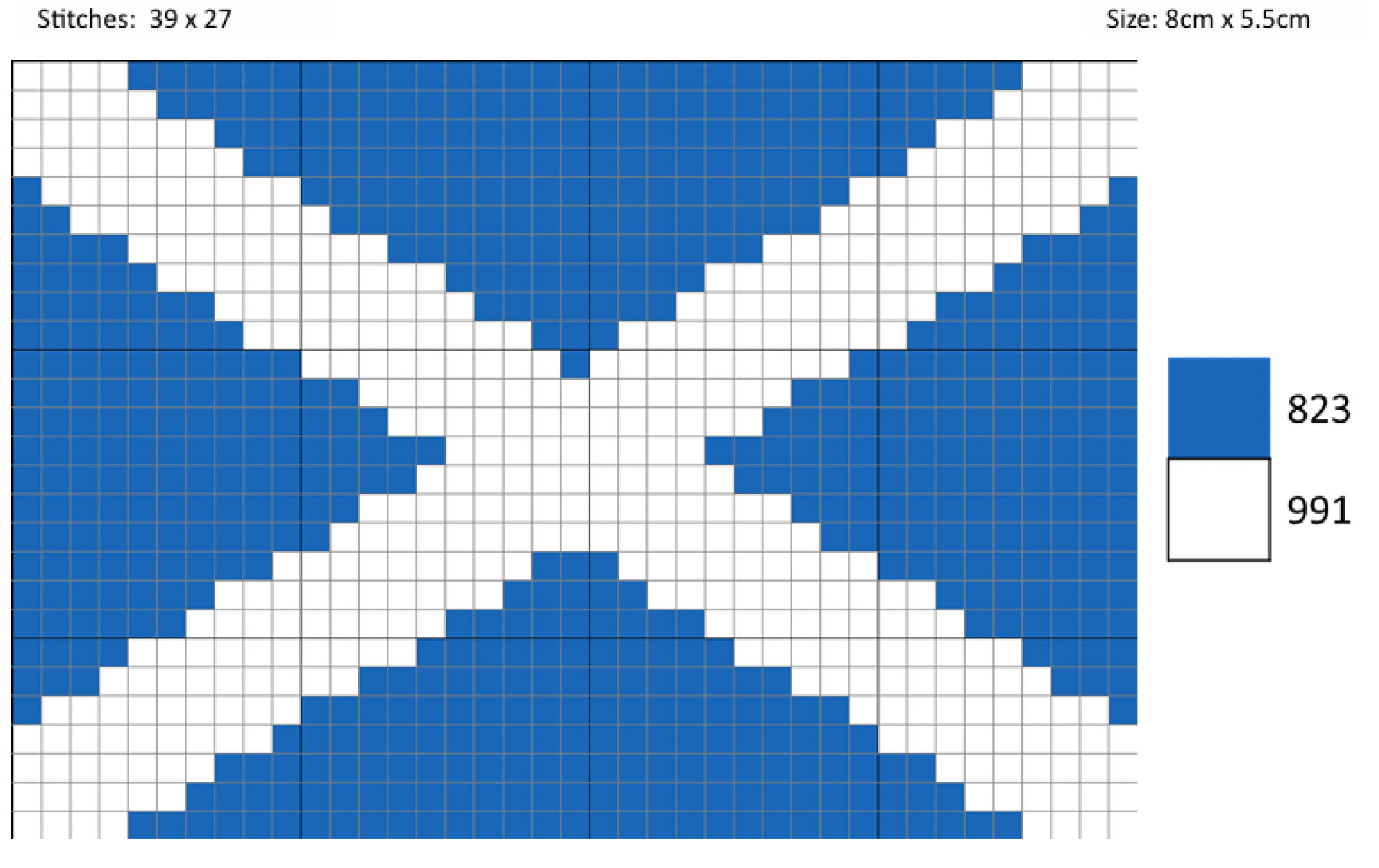 The Scotland Flag is available as a pdf pattern, or you have the option to purchase the wool and frame to complete your project.